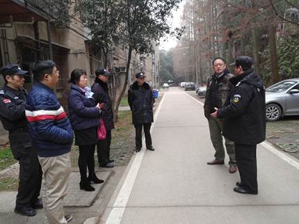 1月9日,社区管理室组织各片区的物业公司、居委会、辖区民警、保卫部等具体负责人,对家属区居民楼道内杂物堆放、灭火器、消防栓配置、楼道内外有无私拉乱接电线现象、室外消防栓、出租房等场所进行全面的消防安全检查,对发现的问题进行现场指导整改,清除火灾隐患。