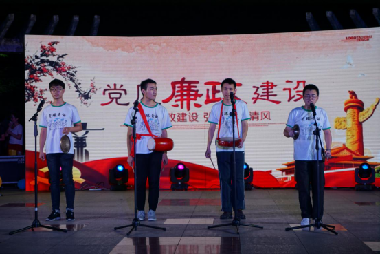 傍晚7点30分,晚会在热烈的腰鼓声中开始,随后,社区文艺团队相继上演了18个精彩节目,讴歌了中国共产党成立97年来所取得的伟大成就和丰功伟绩。舞蹈《军民团结一家亲》、《廉政三句半》、红歌串烧、京剧《我为亲人熬鸡汤》、新疆舞《跟我去哈密》等歌舞表演充分展现了武大测绘社区党员、居民群众爱党爱国、爱岗敬业、奋发向上、团结拼搏、创先争优的精神风貌。参加演出的既有80多岁的老教授,也有在职的年轻党员,他们顶着高温,精神饱满地完成每一个节目,以饱满的热情与社区居民朋友们一起分享他们对党的那份诚挚的感情。
